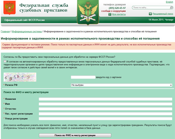 Но мало кто знает, что на сайте Федеральной службы судебных приставов также появился раздел, в котором можно проверить свои задолженности. Вот это уже намного более актуально, потому что если вы там есть - сами понимаете, чем это грозит. Вот здесь вы найдете этот раздел.
