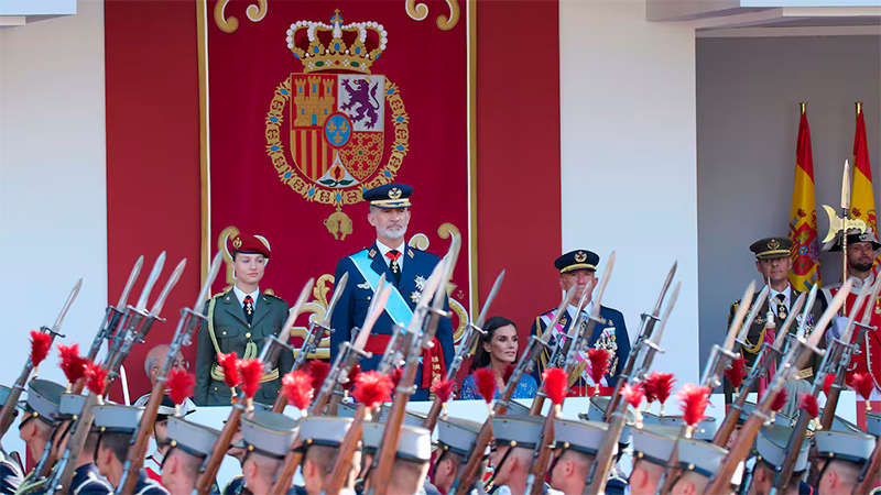 В этот день в испанской столице проходит пышный военный парад, на котором присутствует королевская семья.