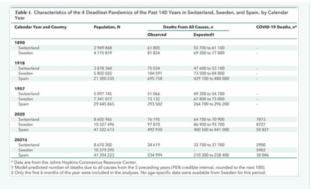 Вышло новое исследование: Historically High Excess Mortality During the COVID-19 Pandemic in Switzerland, Sweden, and Spain.