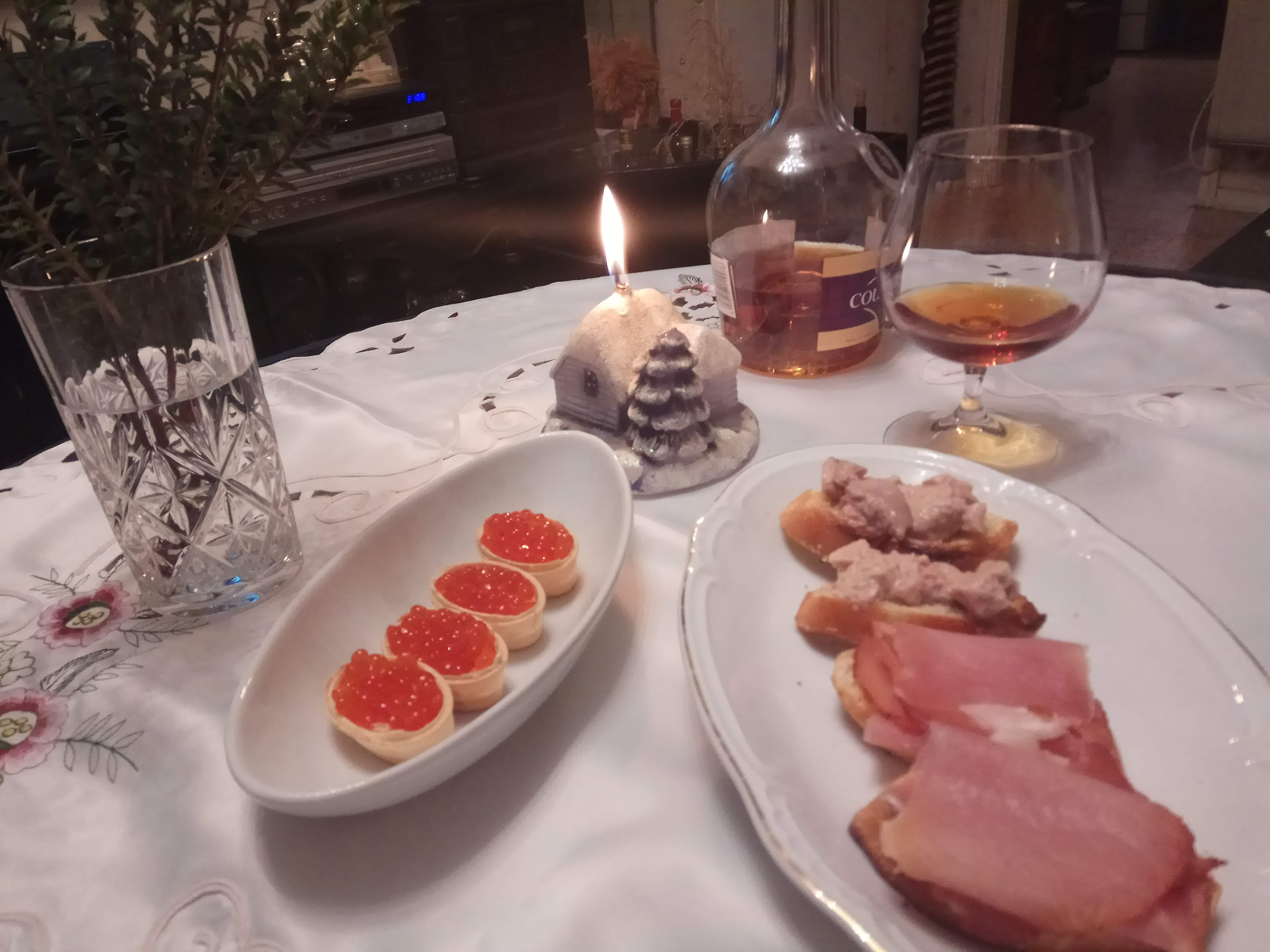 Как чувствовал, в первый раз сфотографировал новогодний стол (на пятерых). Икра чёрная, икра красная, но нет заморской баклажанной... Спиртное было на балконе, поэтому текстом: провожали старый год Cava Vallformosa Classic Brut Rose и Cava Codorniu Cuvee "Barcelona 1872" Brut Rose, встречали Новый год любимой Cava Castillo Perelada Brut Rose. Сейчас продолжим Cava Berdié Amor Brut Reserva "Flower Edition.”
