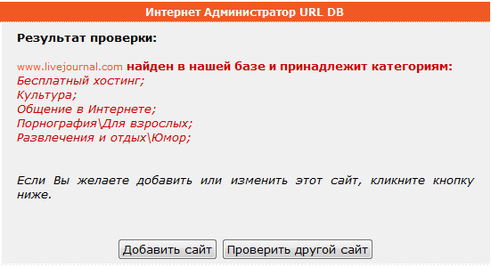 Наконец-то выяснил, к каким категориям относится мой сайт - это по базе IAdmin. В принципе, мужики, конечно, правы. При наличии на сайте разделов sex.exler.ru и www.exler.ru/pussy - это чистая порнография!
