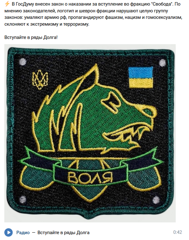 На видео ФСБ с осмотром помещений предполагаемых диверсантов видна тетрадь с надписью «учет личного состава группировки „Свобода“» и знамя с эмблемой в виде головы зеленого волка в профиль и надписью «Воля». Эта эмблема принадлежит группировке «Свобода» из украинской компьютерной игры S.T.A.L.K.E.R, пояснили собеседники издания из числа фанатов игры.