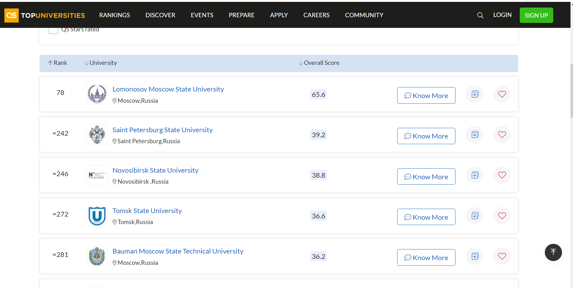 Да все работает:Полный списокwww.timeshighereducation.comПрямую ссылку по Российским не воспроизводит