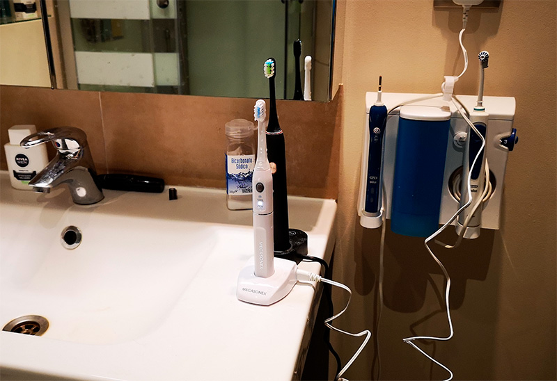 Про ультразвуковые зубные щетки слышал всякую рекламу - не убедило. Написали лично мне люди, которые используют и которых убедило. Ну, не вопрос, заказал себе Megasonex, приехало, пользуюсь. У меня есть железный способ проверить - давно не чистил зубной камень, он есть с двух сторон. Если щетка с ним справится - им повезло: будут взрывные продажи. Не справится - не повезло: ославлю на весь мир. Тест начался сегодня, щетке дано два месяца. И все по результатам будет видно и понятно. Модель не сообщаю - сначала надо проверить. Стоило очень недешево - купил на Amazon за €156.