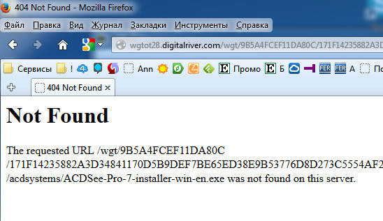 Вышел ACDSee Pro 7. Я тут же сделал апгрейд лицензии с 6 на 7 версию - я этой программой часто пользуюсь, для некоторых вещей она очень удобная. Купил, получил ключ и страницу со ссылками на скачивание новой версии. По всем ссылкам - вот такое.