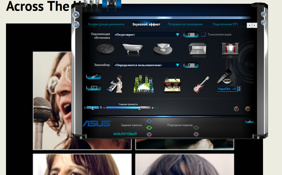Asus Xonar в связке с наушниками HyperX. Щелкал этим пространственным звуком туда-сюда. При включении эффект стерео в моем случае менее выражен, и звук становится смазанным. Может, на встроенной звуковухе будет по-другому? Специально перепробовал на разных песнях.