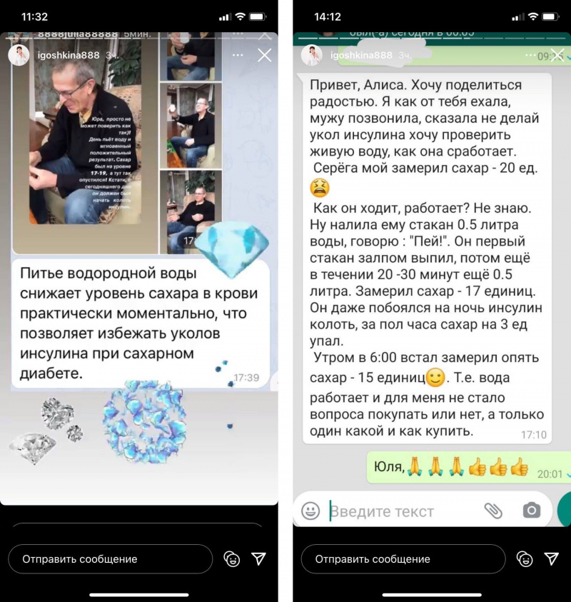Согласен. Мне пришла мысль, что это как с рекламой пылесосов. Пропылесосьте своим, а потом я своим. Смотрите как чисто. И тут тоже: влейте в себя воду, как изменился сахар?Скорее всего уменьшился. Как когда человеку дают сладкую воду и смотрят как меняется уровень сахара, только наоборот.
