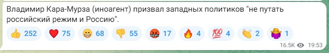 Есть замечательный комментарий по поводу этого "обмена" на youtube канале "Кофе с Любарским". Советую посмотреть. Он там перечисляет имена американцев, которые остались сидеть в путинских застенках - не менее 10 человек после того, как только троих выпустили. Сделка - позорище для Америки и Европы и, соответственно, триумф Путина, который в очередной раз показал, кто в нынешнем мире пахан, а кто - отстойный фраер. Если так дело пойдёт и дальше, то ответ на вопрос, вынесенный в заголовок коммента ( а у Путина до этого руки были чем-то связаны, да?), будет простой. Да - у Путина пока были связаны руки в отношении планов дойти до Атлантики, а в испанской деревне Калейя, где живёт Алекс, поставить российского военного коменданта, равно как и в других европейских городах и деревнях. Кажется, что я несу бред? Что же, тогда можно на мой коммент наплевать и продолжать подобные "обмены" и прочие сделки. Кстати, тот же Любарский утверждает, а он никогда не говорит ничего голословно, что у сделки был тайный протокол, и одним из обязательств западных политпроституток было не трогать 300 миллиардов российских активов, лежащих в европейских банках. Путин бандит, убийца, пахан - список ругательных слов можно продолжить, но за то, как ведёт свою игру, его можно только уважать. Достойного противника или партнёра в Европе и Америке у него сегодня нет - только какие-то карикатурные карлики...