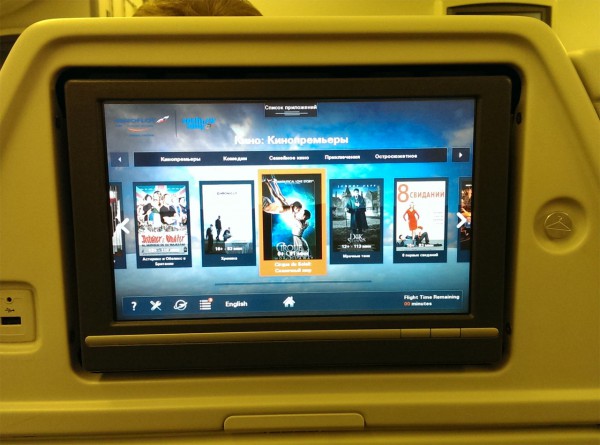 "Аэрофлотом" в Красноярск я летел на "Боинге-777". Ну, я вам скажу, офигенная машинка. Здоровые удобные кресла со всякими подставочками, персональные лампы, розетка, USB-порт, дисплей с кучей всего: фильмы, телепрограммы, несколько видеокамер с самолета, трехмерные карты маршрута, игры, музыка, радио и черта лысого. У кресел спинки не откидываются, вместо этого сиденье выезжает вперед: эффект почти тот же самый, зато у пассажира сзади столик не въезжает ему прямо в печень. Брали вроде обычный эконом, а летели как в хорошем бизнес-классе. Одобряем со страшной силой, что еще на это можно сказать? Последний раз на таком экономе я летал Emirates на Мальдивы. И билет там стоил каких-то нереальных денег. А тут было 400 евро в оба конца. Очень даже нормально.
