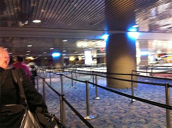 На секьюрити в этот раз народу практически не было - вот пустые загородки, а в прошлый раз они все были заполнены народом.