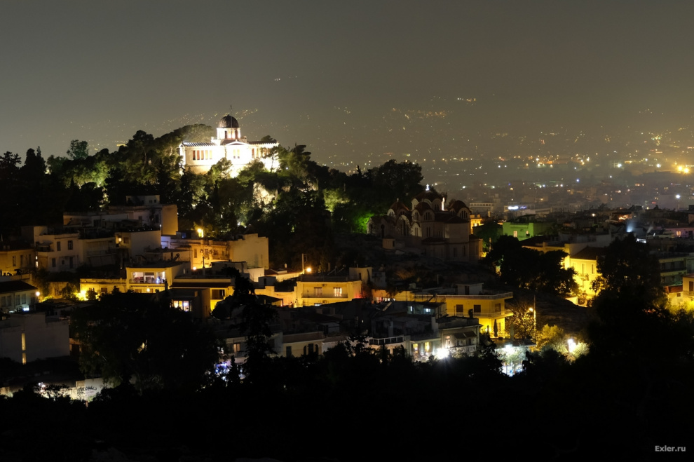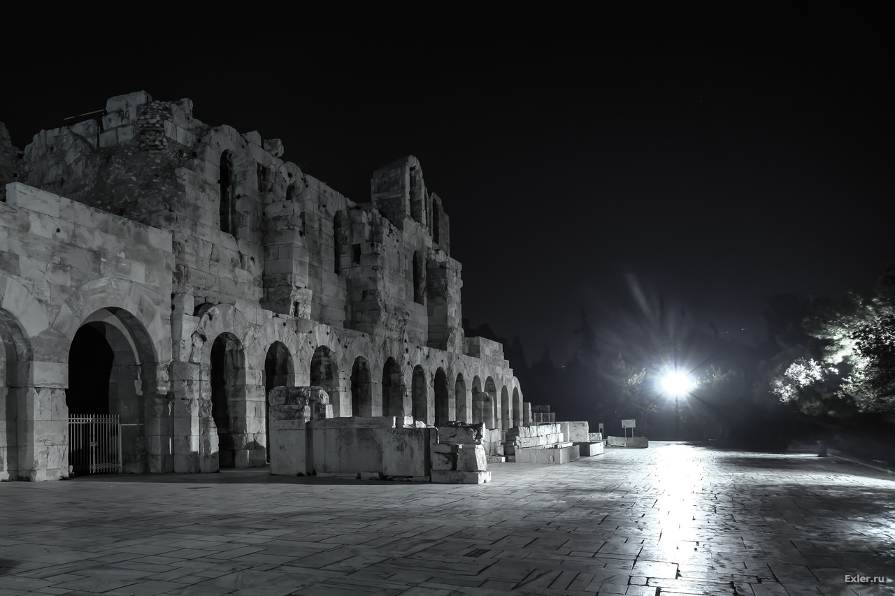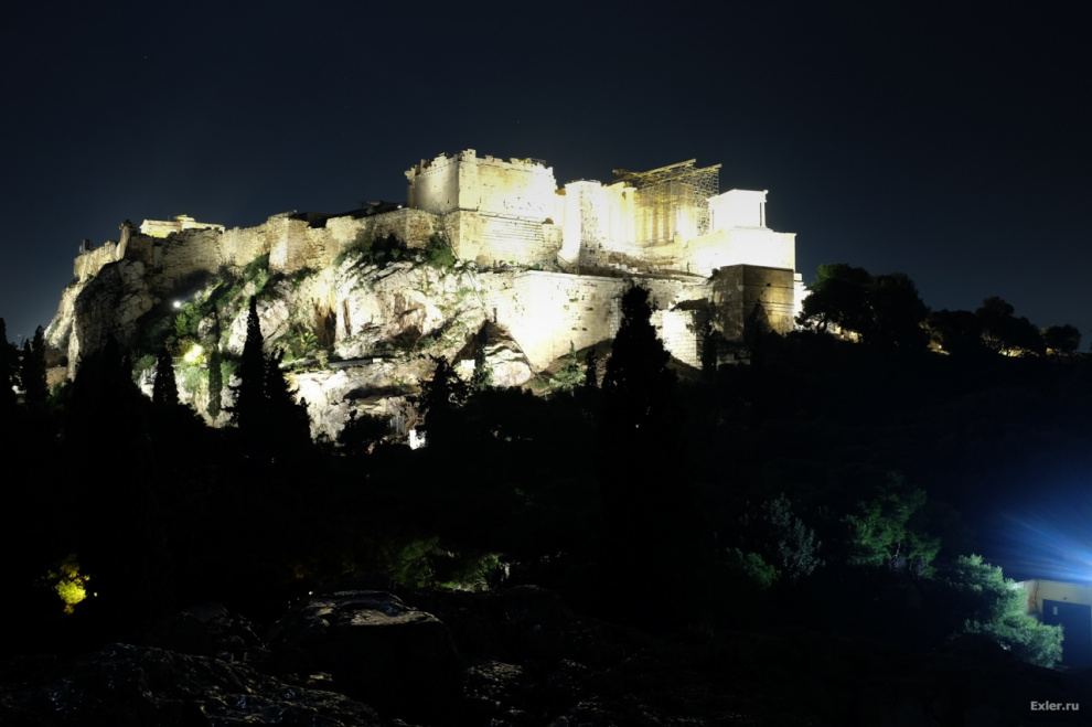 Ночной Акрополь. Яркий пример того, что нужно было снимать в HDR (в данном случае).