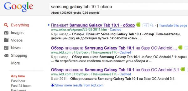А вот если искать так: "обзор планшета Samsung Galaxy Tab 10.1", то порядок выдачи будет с точностью наоборот