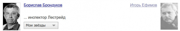 Этот артист был самым настоящим гением озвучания и дубляжа, приняв участие в работе над 630 фильмами. Его голосом в кино говорят Масюлис, Гринько, Джигарханян (в «Собаке на сене», что невозможно даже предположить, настолько это по-джигарханяновски!). Кадочников, Банионис (чаще его дублировал Александр Демьяненко). Бортник, Весник, Кашпур, Спиридонов, Солоницын. Голосом Ефимова также говорит Иезекия, механик Великого Лесли, в фильме «Большие Гонки».Ни у кого не было сомнений в том, что Борислав Брондуков со своим узнаваемым голосом играет в «Шерлоке Холмсе» инспектора Лестрейда. Режиссёр фильма Игорь Масленников рассказывал: «Передо мной встала задача найти на роль Лестрейда комичного, забавного актёра, потому что именно таким был он в сценарии. Выяснилось, что все наши комики какие-то очень уж русские, и найти «англичанина» — это целая проблема. Типологически, вроде, ничего, но как только начинают играть, то сразу что-то неанглийское выходит. А Брондуков был и комичным персонажем, и, как мне казалось, интернациональным. Мы с ним встретились, но он сразу сказал: «Какой я англичанин? У меня же украинский акцент!» Я сказал, что мы сможем переозвучить. Уже тогда существовала этическая норма, что без разрешения самого исполнителя переозвучивать его каким-то другим голосом нельзя. Тогда Боря сказал: «Замечательно, если это будет Игорь Ефимов». Был у нас на «Ленфильме» такой актёр, который работал, в основном, в дубляжной группе. У Бори сработало внутреннее чутьё».
