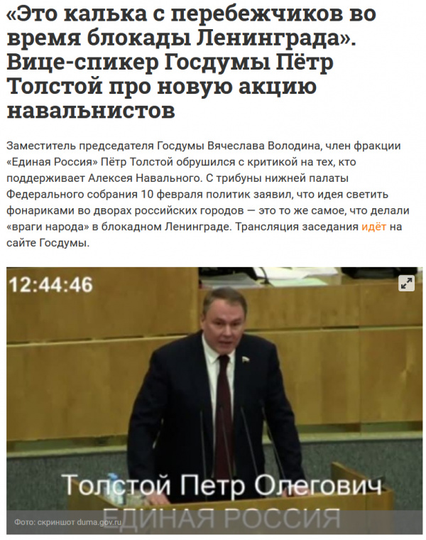 Нам бы хотелось узнать, что же такое курит Петя Толстой, но мы не можем не заметить, что его слова подпадают под статью "Уголовная ответственность за фальсификацию исторических сведений и искажение фактов о роли СССР в победе над германским фашизмом в Великой Отечественной войне", поскольку ничего подобного в блокадном Ленинграде не происходило, и это просто наглая и подлая ложь. Я думаю, что потомки блокадников из Питера должны написать заявление на Толстого по факту клеветы и фальсификации исторических сведений.