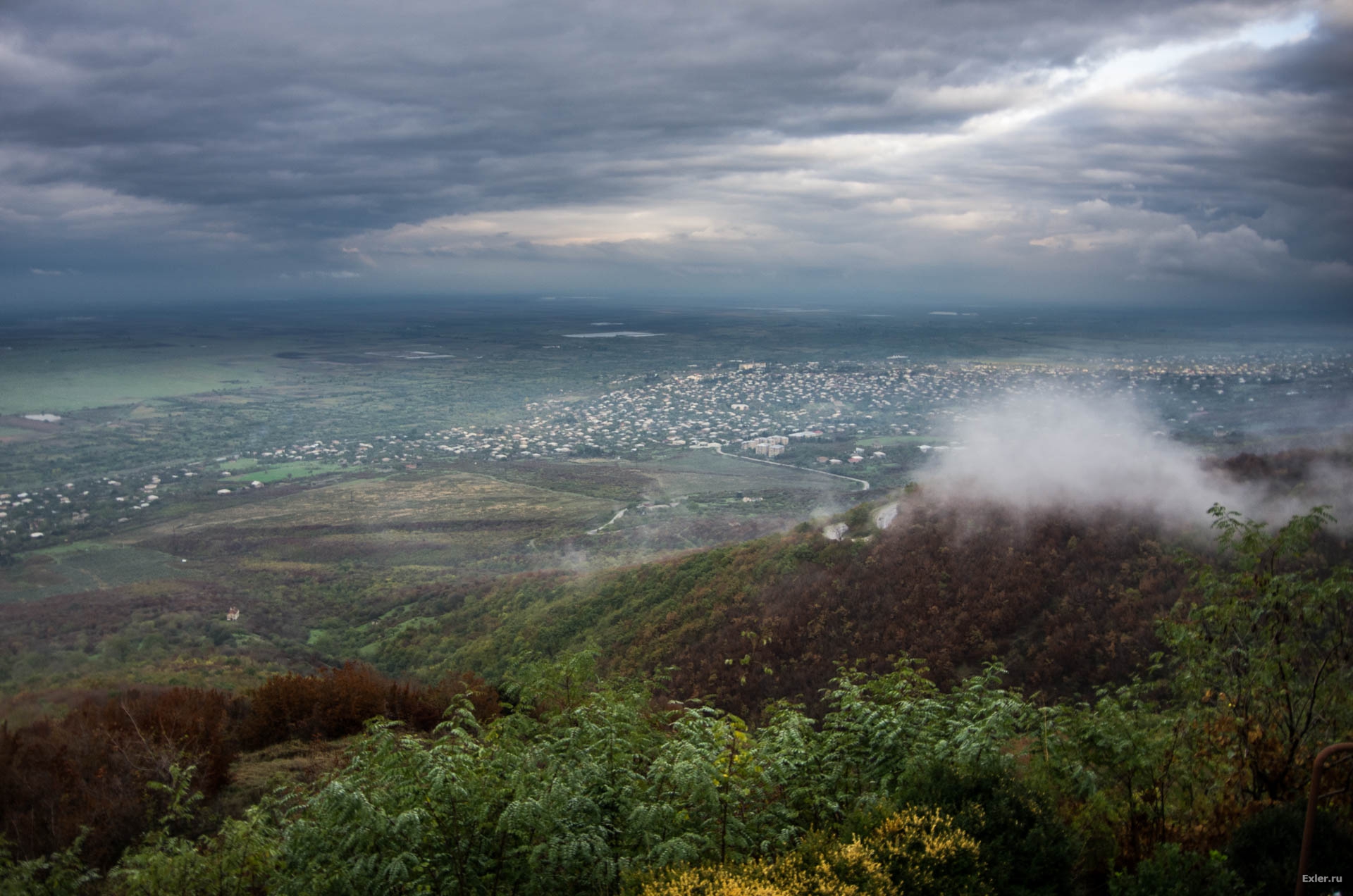 Вот она, долина. Было очень пасмурно, поэтому я мало что наснимал. На горизонте видны (когда нет дымки) горы. Местные говорят, что оттуда приходят чеченцы, которые через эти горы переправляют наркотики: они идут с двумя бутылками воды и четырьмя сникерсами - мол, именно так можно преодолеть эти горы. Я, если честно, эти данные не проверял - у меня не было ни сникерсов, ни наркотиков.