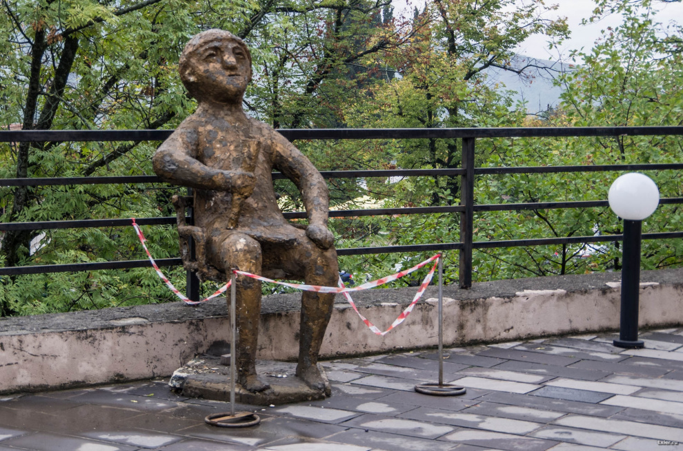 Вот кому или чему этот памятник - я не знаю, если честно. Тем более, что его закрыли на реставрацию. (Подсказали - скульптура называется "Тамада". А и действительно.)