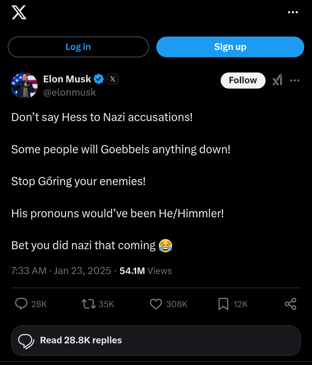 Интересно, кстати, через какое время Маск заявит, что Гитлер был великим человеком? Что-то мне подсказывает, что ждать уже недолго.