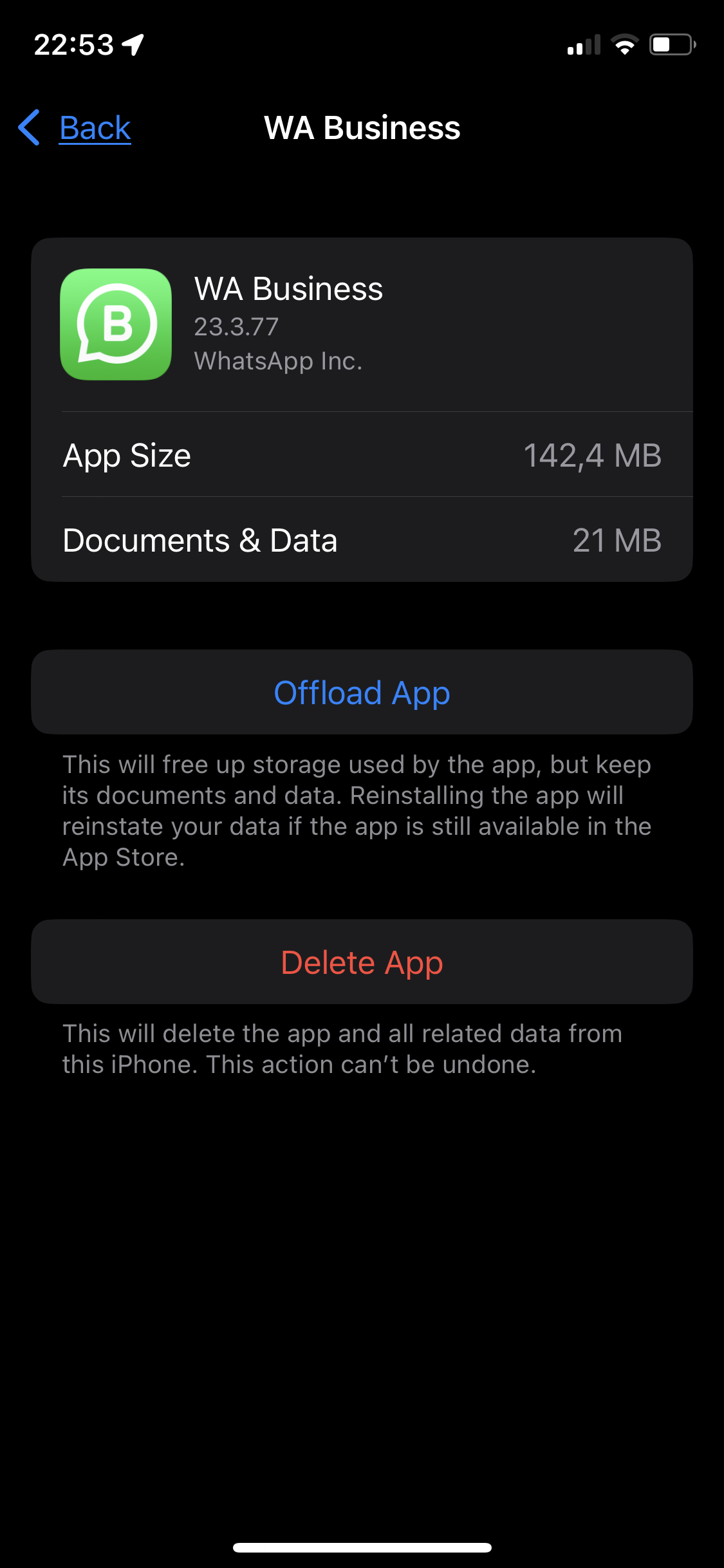 WhatsApp отстой. заметил как-то, что у меня он отъел 1.3ГБ на айфоне, хотя я его использую раз в неделю, а то и в две. решил почистить storage, захожу в Storage and Data, тапаю на Manage Storage и всё - апликуха повисла. почистил вручную в нескольких чатах картинки и видео (нельзя выбрать все медиа чата - надо тапнуть на каждое медиа!), стал он 489МБ, но все равно Manage Storage нельзя запустить.
