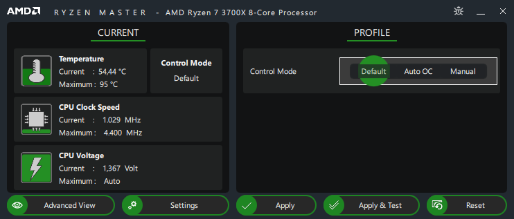 Я пробовал разные способы снизить температуру этого процессора. В итоге самым эффективным способом (кроме него можно уже ничего не делать) оказался следующий. Сначала нужно установить AMD Ryzen Master, что в моем случае оказалось не слишком тривиально. Сначала я его просто скачал, инсталлировал, а оно вроде как инсталлировалось, но пропало, то есть в системе не обнаружилось. Ну, то есть инсталляция до конца не дошла и померла, не издав ни единого звука. Потом оказалось, что его предлагает установить Gigabyte Control Center. Скачал через него, запустилась инсталляция, после чего выдалась какая-то дурацкая ошибка из серии "Setup не сконфигурирован для того чтобы быть запущенным на этом компьютере". Мне было не очень понятно, как его конфигурировать - покрасить в зеленый цвет, что ли?