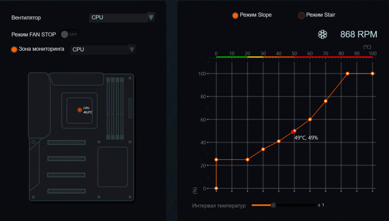 Ну и еще разобрался с тем, почему мои настройки режима работы кулера в BIOS не оказывали никакого влияния. Оказывается, приложению Gigabyte Control Center пофиг, что там настроено с кулером в BIOS, оно все равно им управляет по-своему. И тогда я просто в ручном режиме, который там есть, настроил желаемую скорость вращения в зависимости от температуры процессора, то после этого стало все так тихо, что кот Бублик теперь толком не может заснуть днем - раньше легкий шум кулера его убаюкивал.