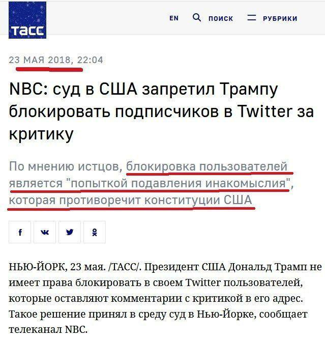 Изрядно доставляют персонажи, доказывающие, что блокировки аккаунтов Трампа и его сторонников - это никакая не цензура, а самая настоящая свобода.