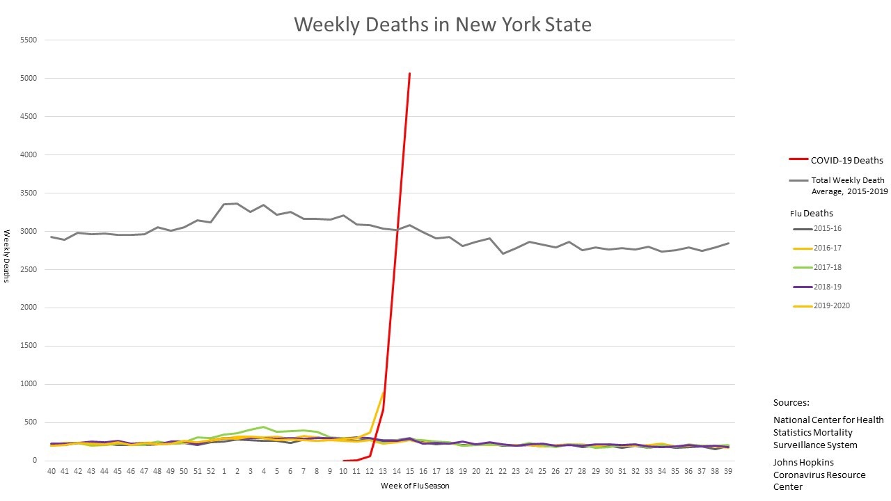 Там график со статистикой недельных смертей по штату Нью-Йорк