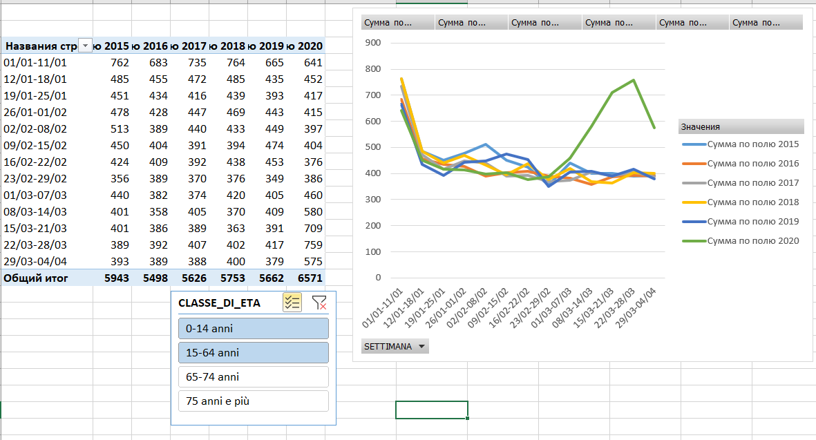 Анализ смертности по годам в Италии