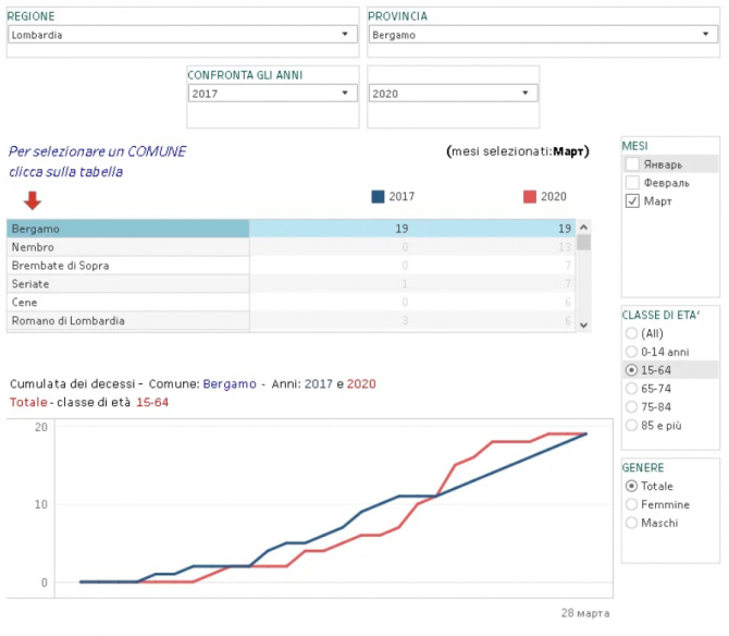 В этот раз март 2017 года может "потягаться" с коронавирусным мартом 2020. И тогда, и сегодня имеем в марте по 19 смертей в Бергамо среди тех, кому еще не исполнилось