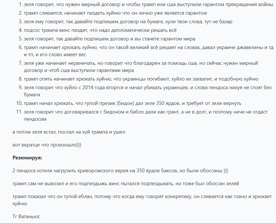 - Акцент на том, что Зеленский и Украина зависят от США, что может быть попыткой укрепить свою позицию в переговорах.
