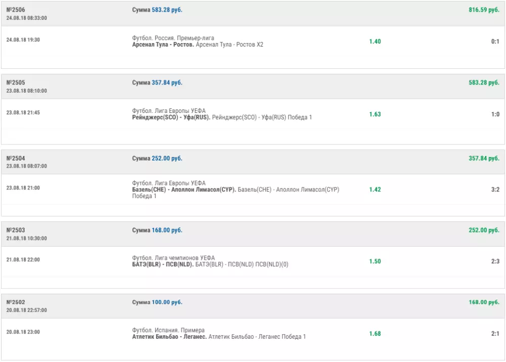 Но на практике стратегия лесенка сулит больше проблем. Во-первых, на старте прибыль будет мизерной, и выдать 10 ставок вряд, чтобы дойти до приемлемого показателя - можно, но с какой попытки? Во-вторых, любой проигрыш перечеркивает все старания. В-третьих, даже если всё складывается успешно, наступает такой момент, когда тяжело психологически ставить серьезные суммы. К такому большинство не готовы. Правда, этот нюанс легко исправить, если забрать своё и чуть сверху и продолжить ставить, либо остановиться.