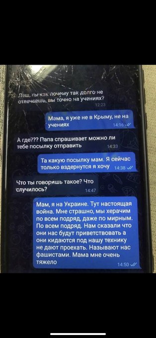 Расскзывайте родственникам, знакомым. Матери и жены русских военных должны видеть что происходит. войну нужно остановить. в самой россии должны понять, что это трагедия и путь в никуда. их граждан просто гонят на бессмысленный убой!