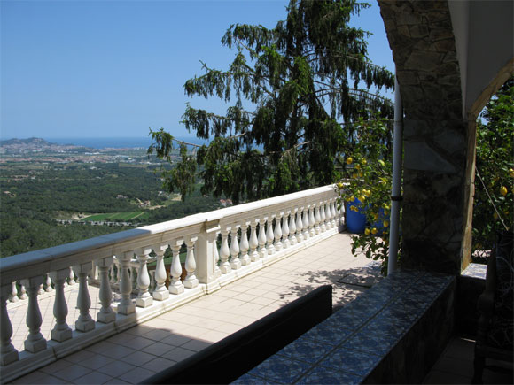 Итак. Вилла на холме на Коста Брава примерно в 60 километрах от Барселоны. До моря (комфортабельный пляж с лежаками, зонтиками и кафе) - порядка 4 километров, 12 минут езды на машине. (Машину можно взять напрокат в соседнем городке, что я и сделал.) Верхний этаж: гостиная, кухня, санузел, балкон. Второй этаж: пять двухместных спален (две больших, три поменьше), холл, санузел. Третий (нижний) этаж - летняя кухня, здоровенная открытая галерея с шикарнейшим видом на долину (вот панорама), балкон, санузел, очаг, мангал. Под ним большая площадка с бассейном (8х4 метра).