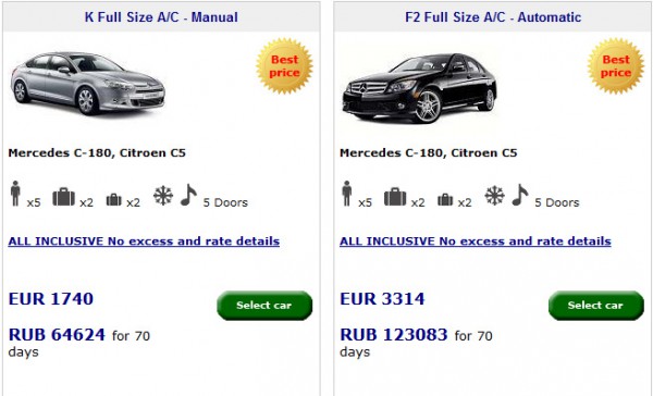 P.S. Вот разница между ручной и автоматической коробкой в прокате. Ни фига себе...