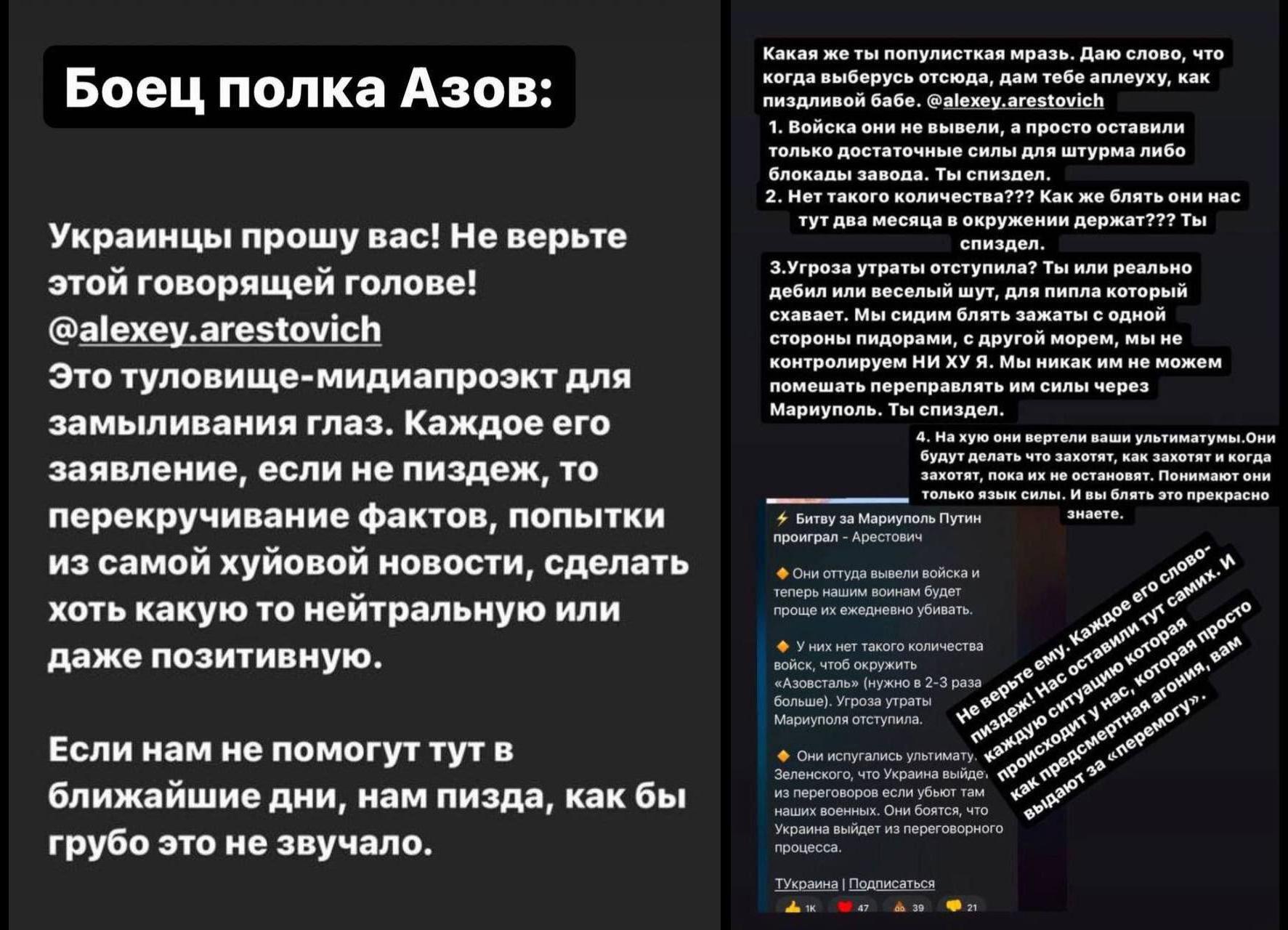 И где я должен "прочитать ответ Арестовича"? Кидайте, почитаю.