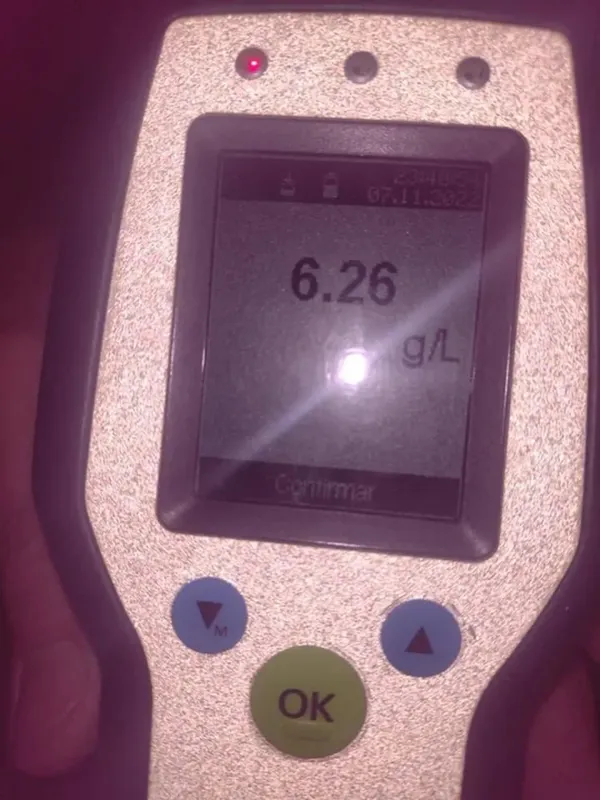 Когда прибывшие полицейские измерили содержимое алкоголя в его крови, то они офонарели - прибор показал 6,26 гр/л алкоголя в крови.
