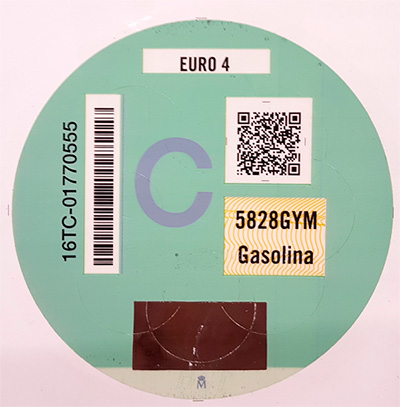 Например, уже с этого года во многих крупных городах Испании (Мадрид, Барселона, Валенсия и так далее) для дизельных машин типа как запрещен въезд в центр города. Пока только формально. То есть им по почте начнут приходить предупреждения. Пока без штрафов. А с 2020 года уже начнут приходить со штрафами. На стекла машин с бензиновым двигателем соответствующего уровня экологичности (Euro 4) будут наклеиваться вот такие значки. Если этого значка нет, то при доступе в запрещенную зону будет выписываться штраф. Вот такие дела.