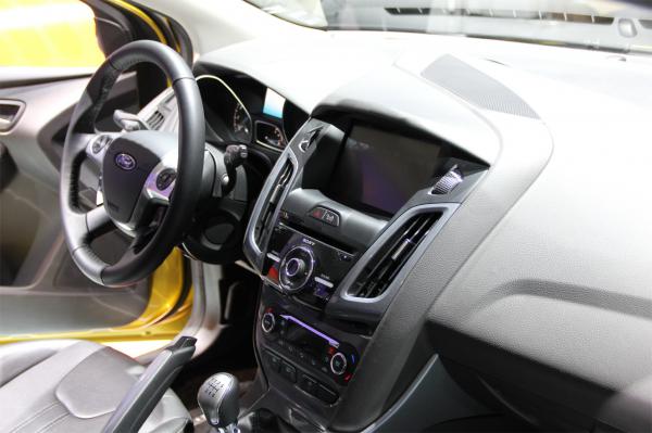 На стенде показывали один "Фокус", оснащенный системой Sync, о которой нам рассказывали на CEBIT. Я-то надеялся, что Sync будет стоять на "Фокусе", на котором предстояло кататься, но ничего подобного. Так и не удалось ее потестировать в действии.