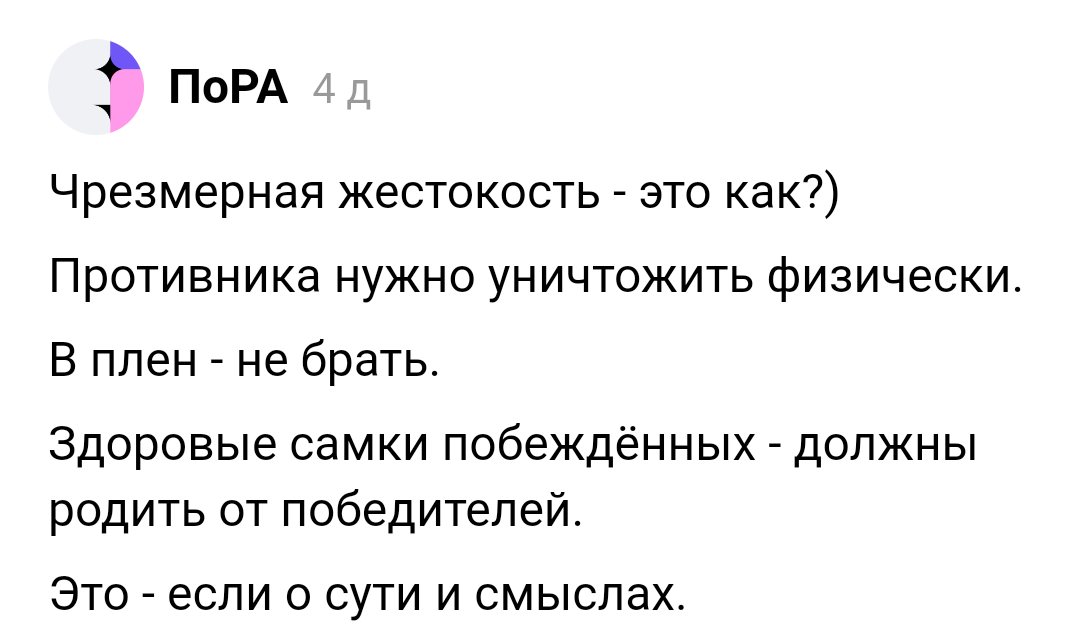 Как образец, чтобы не забывать, с кем мы имеем дело, и как граждане РФ интерпретируют понятие родины, патриотизма и т.д. А то могут возникнуть всякие иллюзии.