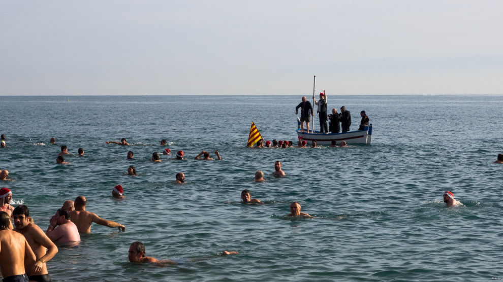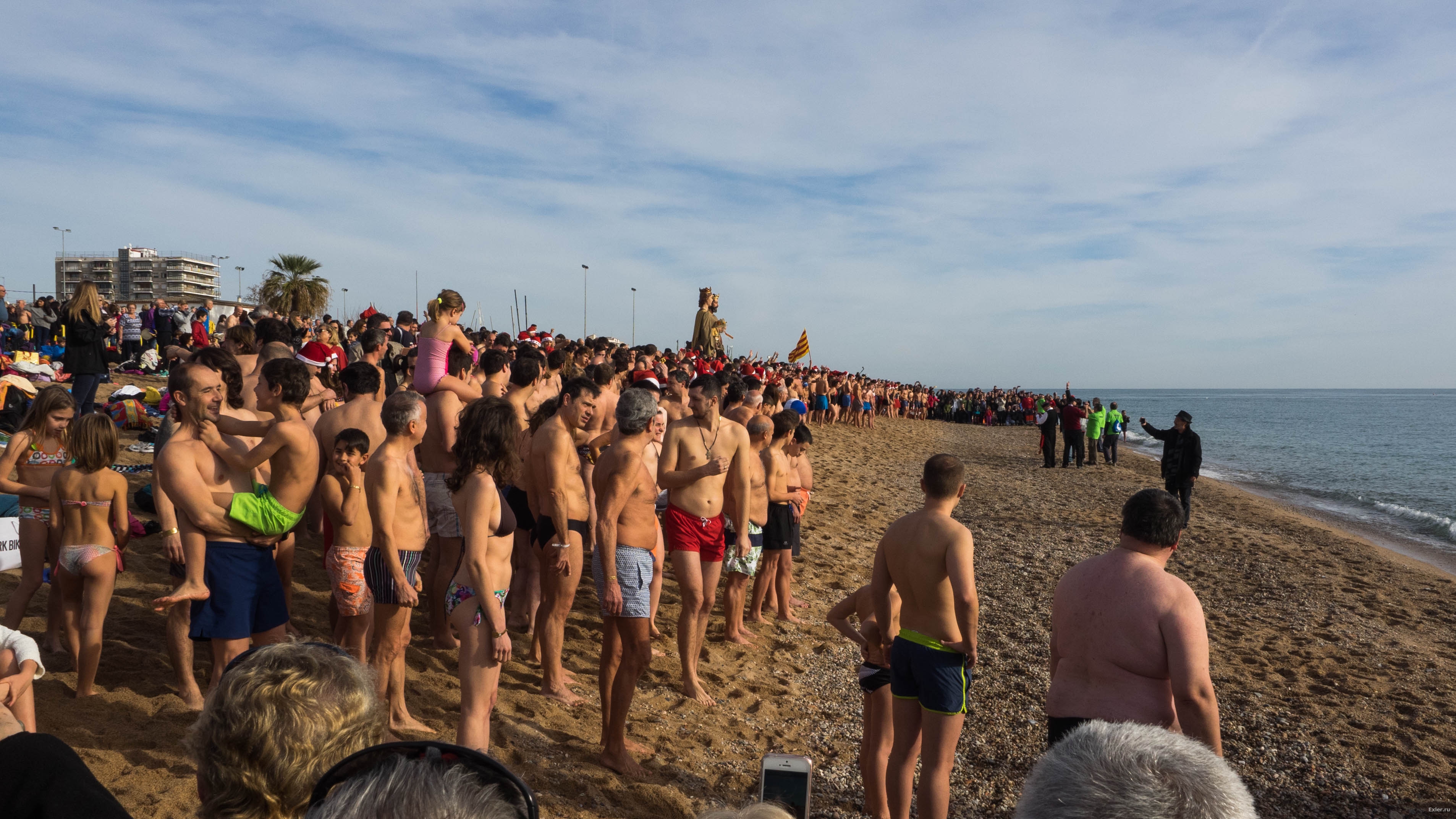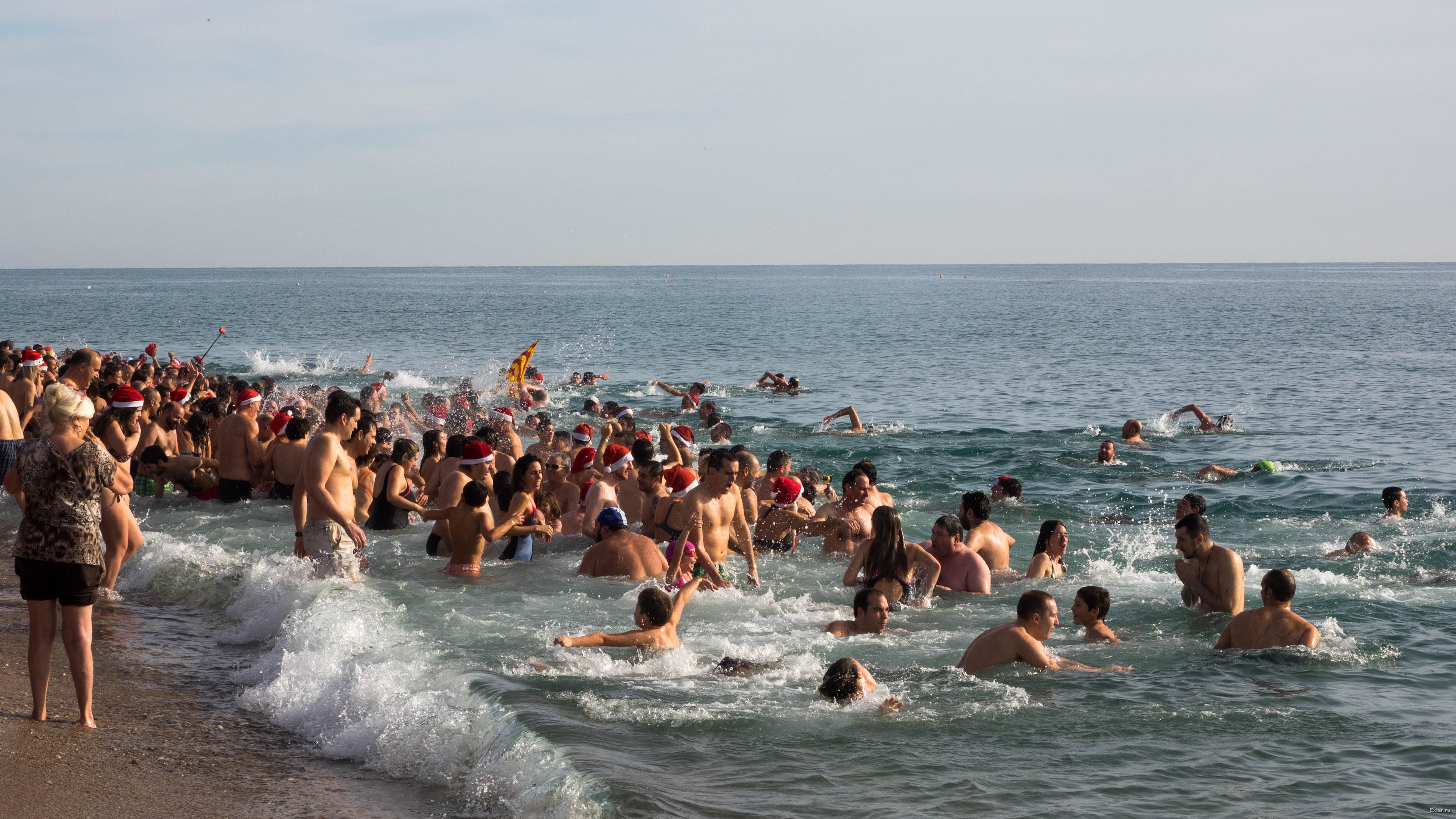 Старая традиция нашего городка - рождественские купания. В России, где ныряния в прорубь - народная забава, к этим каталанским развлечениям относятся со снисходительной усмешкой, но для местных раздеться в лютые зимние морозы в +15 и нырнуть в море, температура воды в котором +16 - это подвиг.