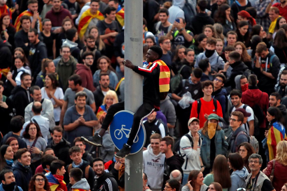 Протестующие на улицах Берселоны -  ALBERT GEA (REUTERS).