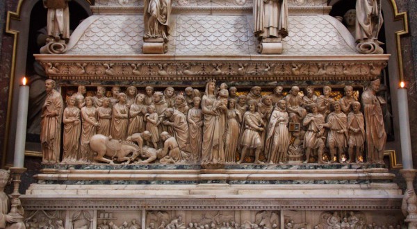 Главная достопримечательность - роскошная рака с мощами, украшенная скульптурами и горельефами.