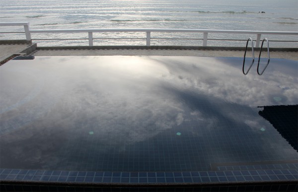 На вилле бассейн сделан очень грамотно: вода переливается через край, картина получается обалденная, особенно с учетом вида на залив, до которого от края бассейна - метра три.
