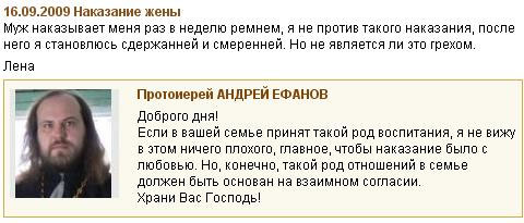 Протоирей сам, видимо, большой любитель бить женщин, раз он так сладострастно отмечает, что ежели с любовью, то не только можно бить, но нужно. Тут у него явно выражается деструктивный тип личности. Типичный вид некрофилии - как психического отклонения.