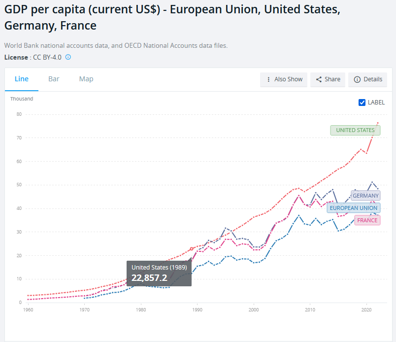 Ну и, собственно, там вся статья посвящена одной-единственной немудреной мысли, ради которой это всё писалось: в Европе теперь - жопа, зато в Штатах - неслыханное процветание!