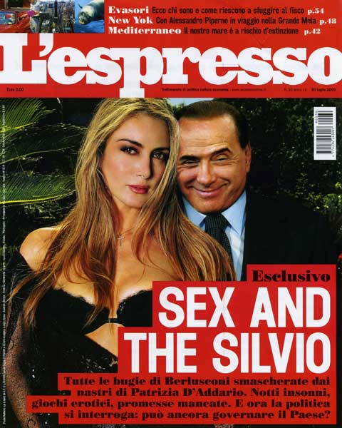 В итальянской L'Espresso очень забавный подзаголовок (который на английском) на обложке. Это по поводу скандала с Патрицией Д'Аддарио.