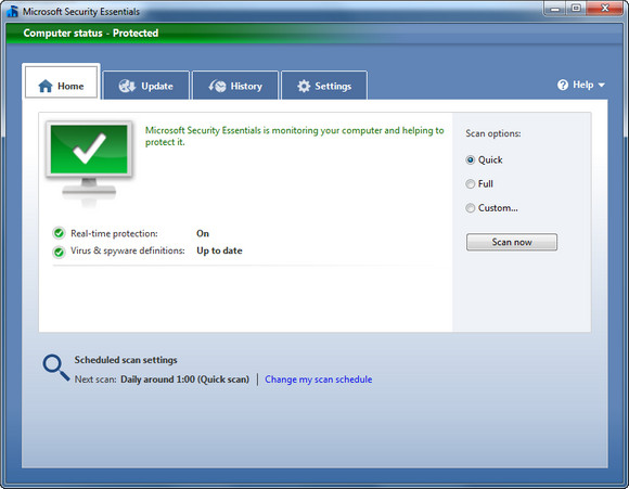 Поставил потестировать бесплатный антивирус от Microsoft - Security Essentials. Он пока beta. Для России из MSIE скачивать пока не дают, пишут, что в вашем регионе не доступен, однако если страницу открыть в FireFox - то все прекрасно загружается (есть версия для XP, для Vista 32 и Vista 64, которые также подходят для Windows 7, под которой он у меня и установлен).