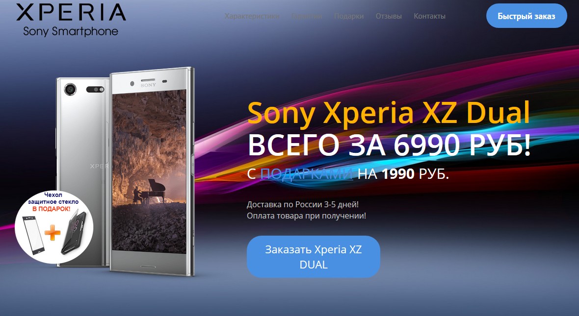 Прислали ссылочку на страничку с крайне соблазнительным предложением Sony Xperia ZX Dual за 6990 - это в три раза дешевле реальной цены. На сайте обещают быстрый заказ, быструю доставку, оплату только при получении.