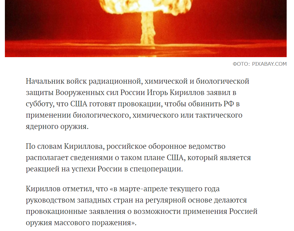 Минобороны: США готовят провокации для обвинения России в применении ядерного оружия