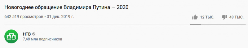 Посмотрел на канале НТВ. 49 тысяч дизлайков. Видать новогоднее обращение президентов россиян за душу взяло.
