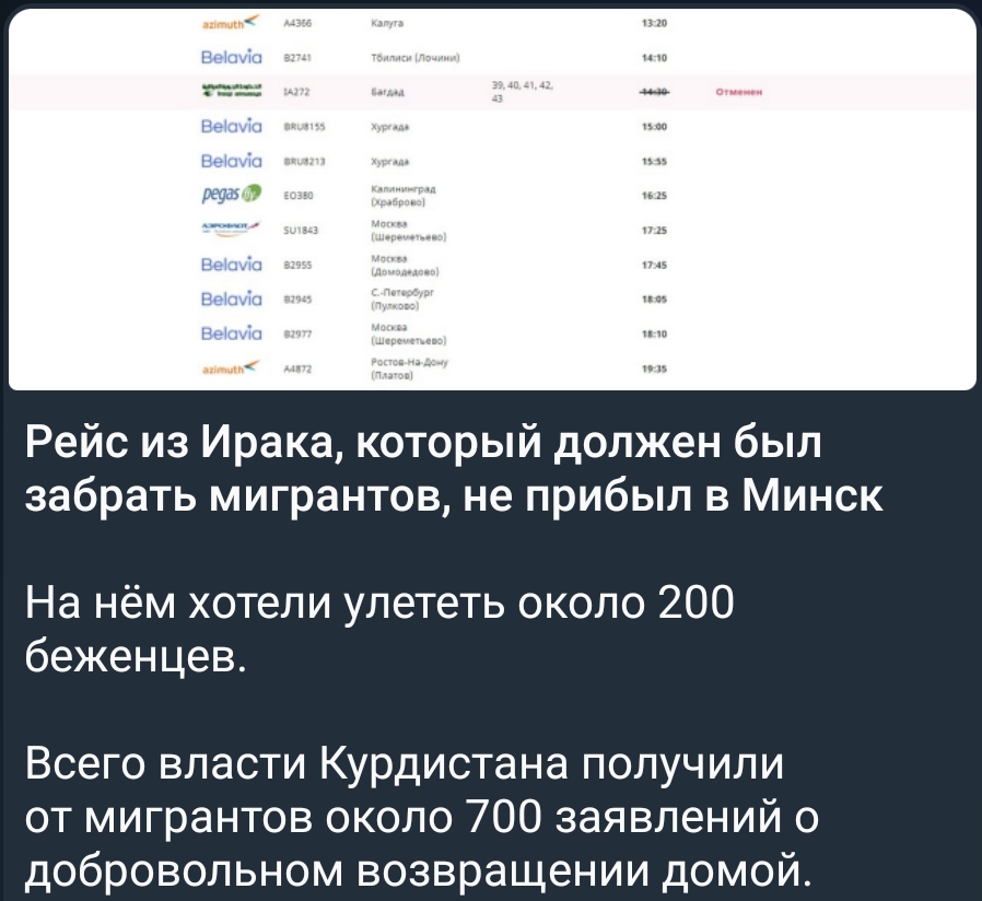 С 13 мая 2021 в Беларусь массово организованы авиарейсы из Ирака. "Для туризма" - потому что иракские туристы внезапно стали резко интересоваться историей и достопримечательностями Беларуси.